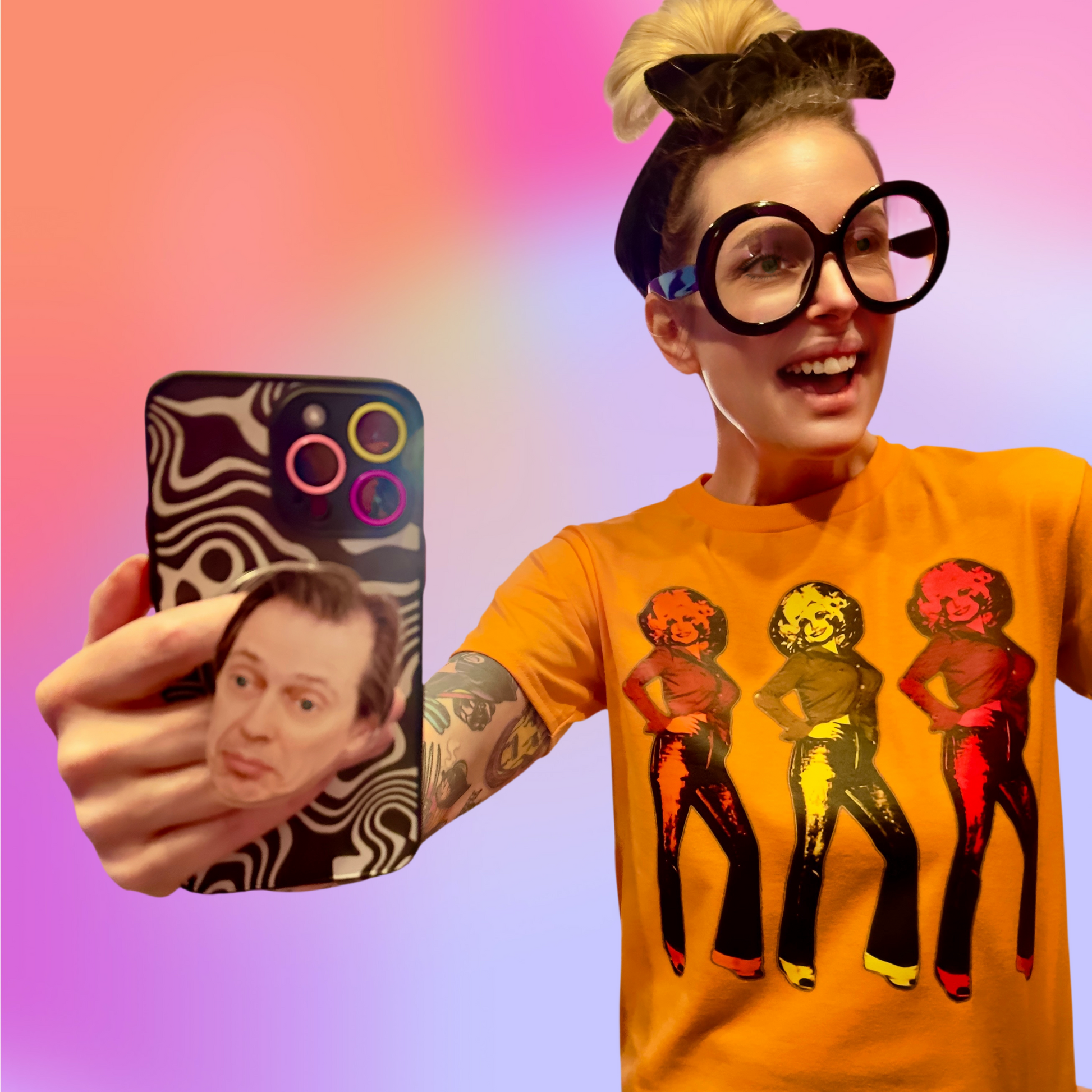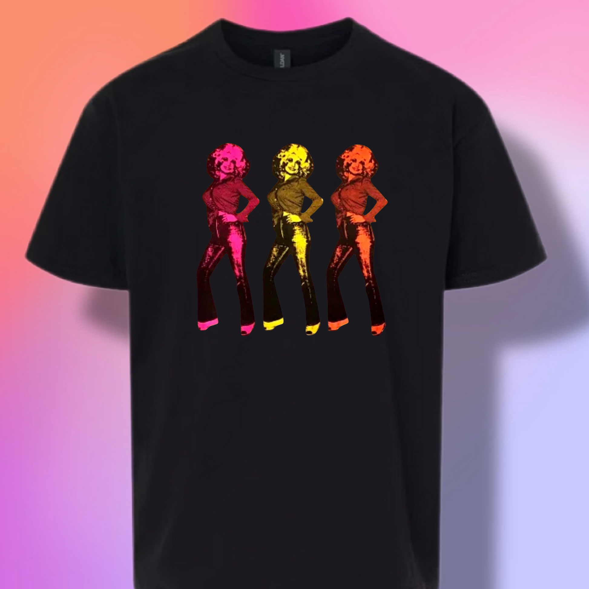 This bonkers fun graphic features a classic image of the ICONIC Dolly in a triple take shot from the 1970's done in a Warhol pop art style. It is available now in all different styles of unisex Tees & Hoodies! Just choose below!